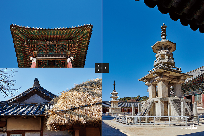1·3. 한국 사람이라면 누구나 알고 있는 다보탑과 석가탑을 품은 불국사의 풍경. 2. 양동마을의 풍경. 기와집과 초가집의 대비를 엿볼 수 있다.