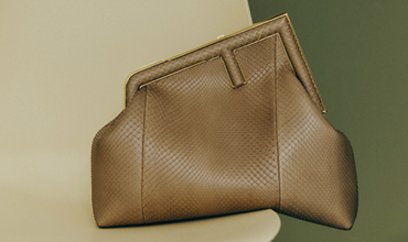 (좌) FENDI (위) 하우스 모노그램을 클러치 디자인으로 변형시킨 미디엄 사이즈의 나파 가죽 소재 펜디 퍼스트 백. (아래) 오버사이즈 메탈 F 클래스프가 인상적인 미디엄 사이즈의 브라운 컬러 펜디 퍼스트 백.