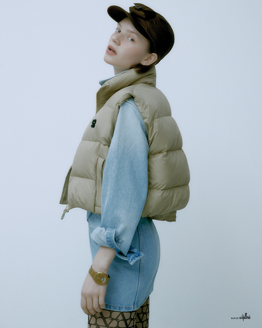 SANDRO 다양한 룩에 매치하기 좋은 뉴트럴 컬러의 패딩 베스트. OFF-WHITE™ 언밸런스 피트의 셔츠 드레스. VALENTINO 트왈 이코노그라프 모노그램이 시선을 사로잡는 타이츠. FENDI 프런트 포켓 디테일의 브라운 볼 캡. GUCCI 3개의 윈도로 시, 분, 날짜를 표시하는 그립 워치.