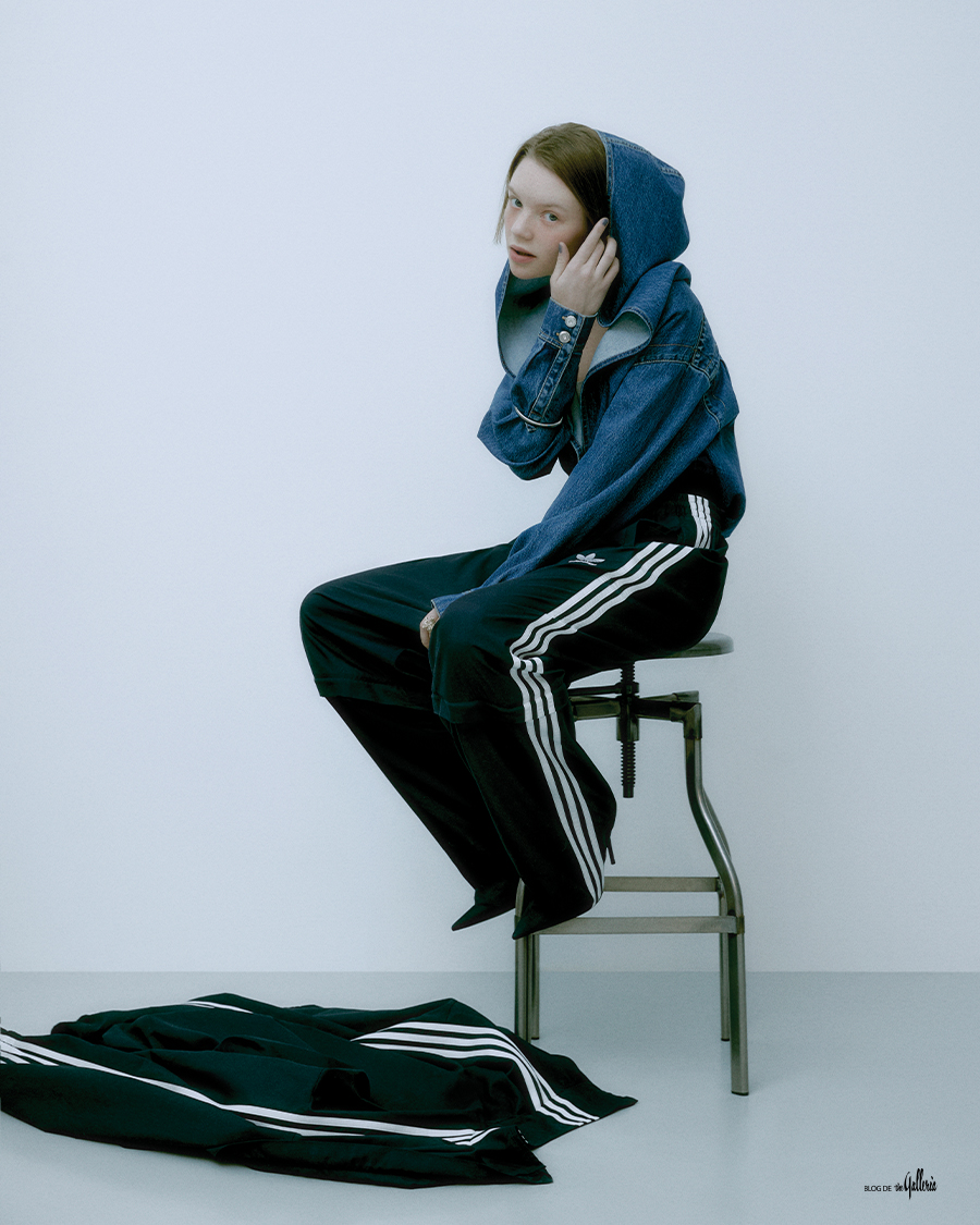 ALAΪA 독특한 후디 디자인의 데님 보디슈트. BALENCIAGA 아디다스의 스트라이프를 매치한 트랙슈트 재킷, 팬츠와 부츠를 결합한 팬타슈즈 T36. COS 옷소매 위에 연출하기 좋은 실버 뱅. DIOR 밴드 위에 새가 앉은 디자인의 링.